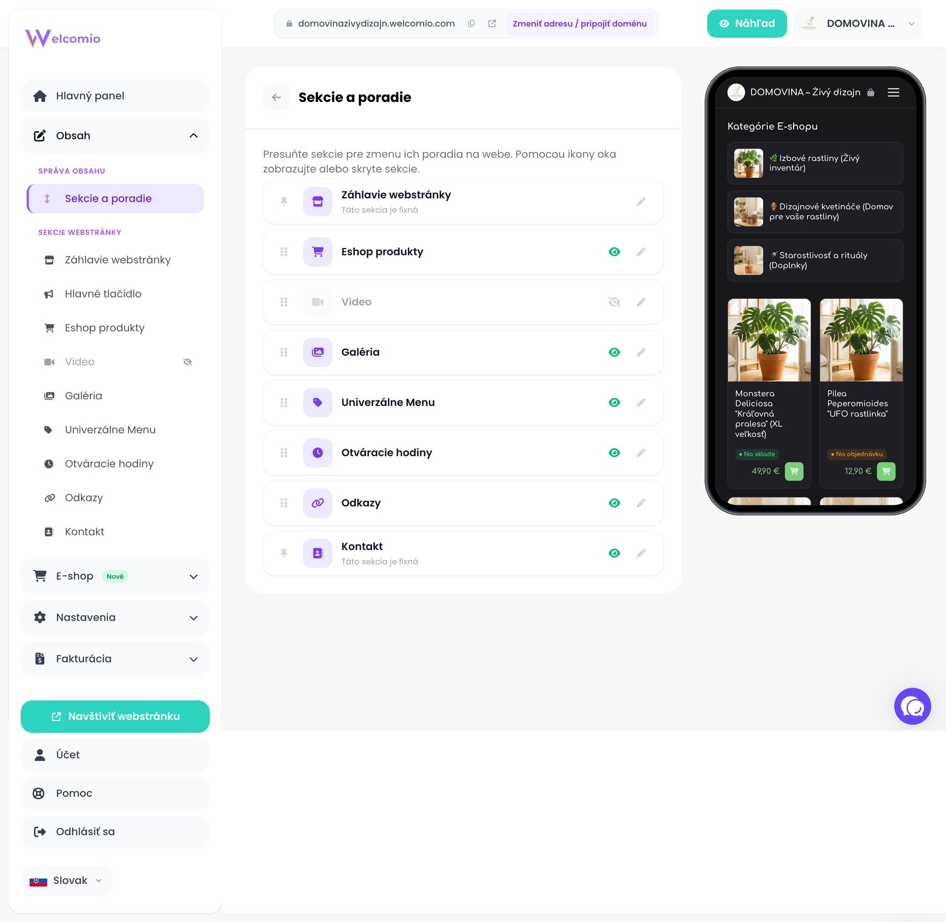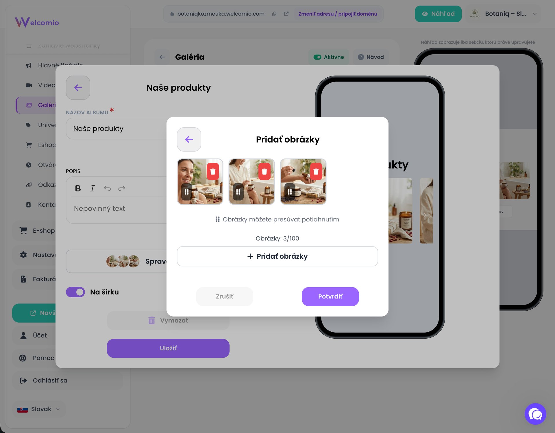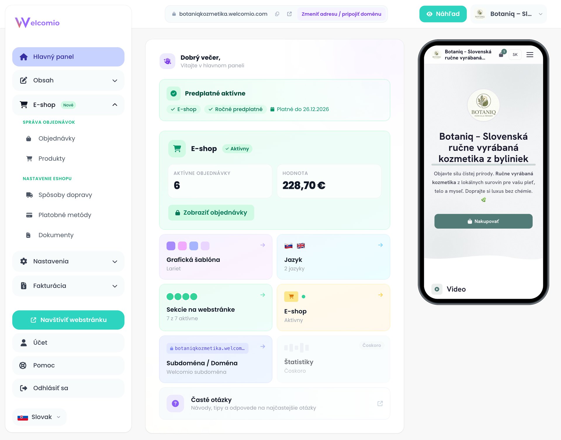 S Welcomio môžete spravovať svoj web či e-shop aj z vášho mobilného telefónu. Bez akýchkoľvek obmedzení.