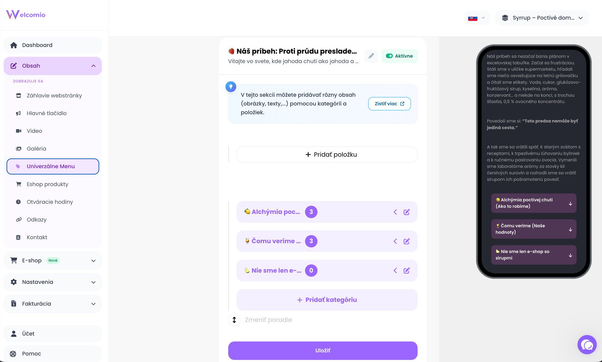 Preskúmajte intuitívne a prehľadné administračné rozhranie Welcomio, ktoré prináša jednoduchú správu obsahu bez potreby technických znalostí. Vďaka čistému dizajnu a logickému usporiadaniu máš všetko pod kontrolou – od úprav stránok a galérií až po nastavenia webu.