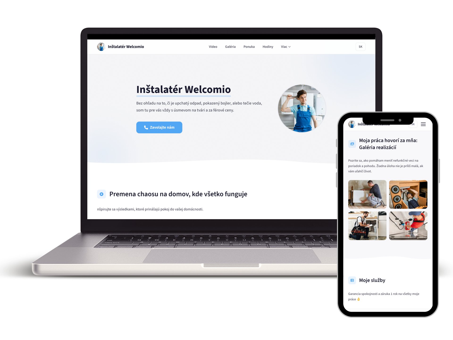 Vaša poctivá práca si zaslúži profesionálnu prezentáciu, ktorá vás neoberie o čas v dielni. Ukážte svoje referencie a portfólio v čistom dizajne, ktorý „sa nerozsype“. S Welcomio si web spravujete sami priamo z telefónu – stačí odfotiť hotový projekt a hneď ho pridať na stránku.