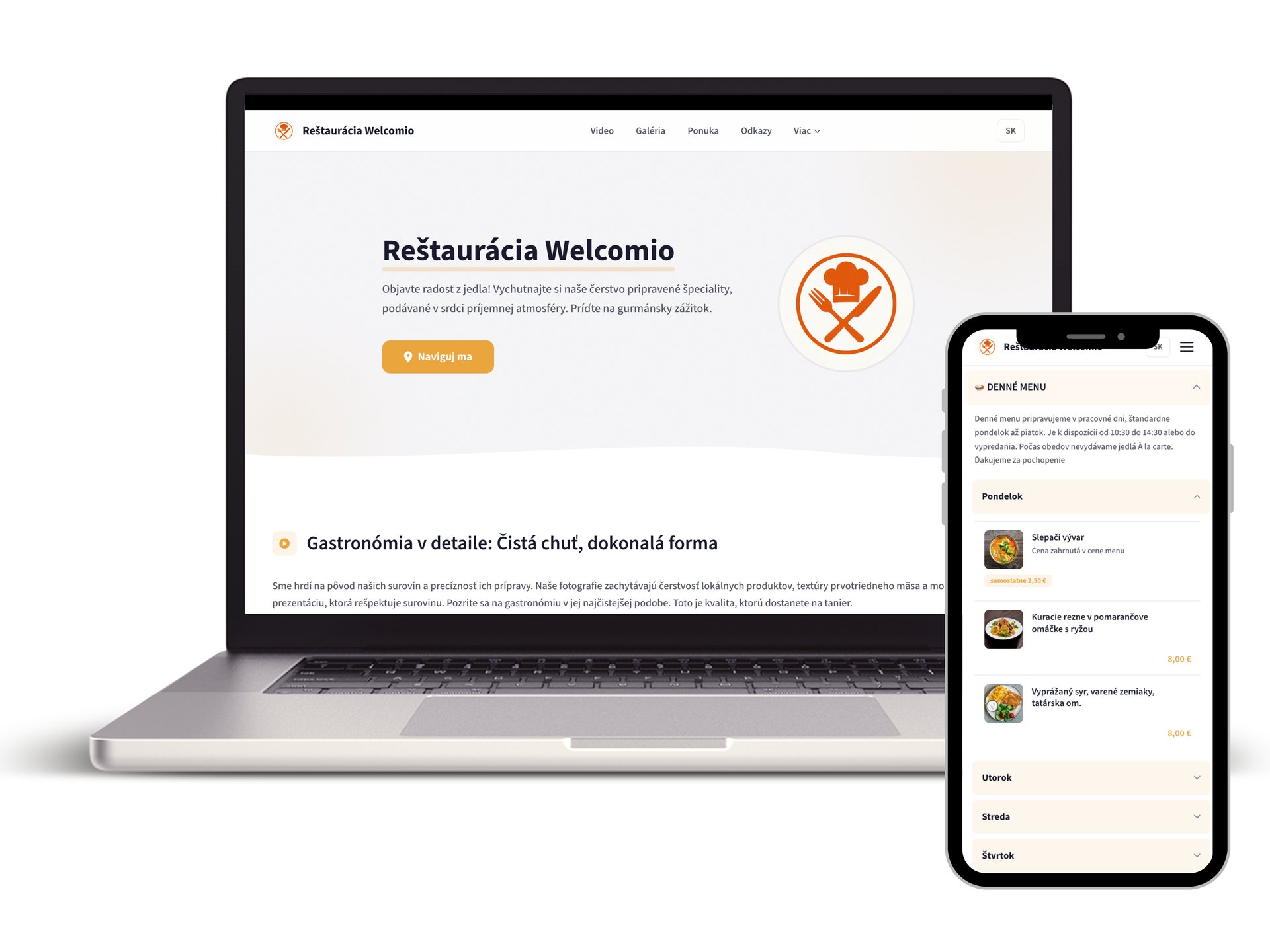 Pozrite sa, ako môže vyzerať vaša nová webstránka. Čisté línie, moderné rozloženie a prvky, ktoré návštevníkov okamžite zaujmú. Všetko sa automaticky prispôsobí mobilu aj počítaču, takže vyzeráte skvele na každom displeji.